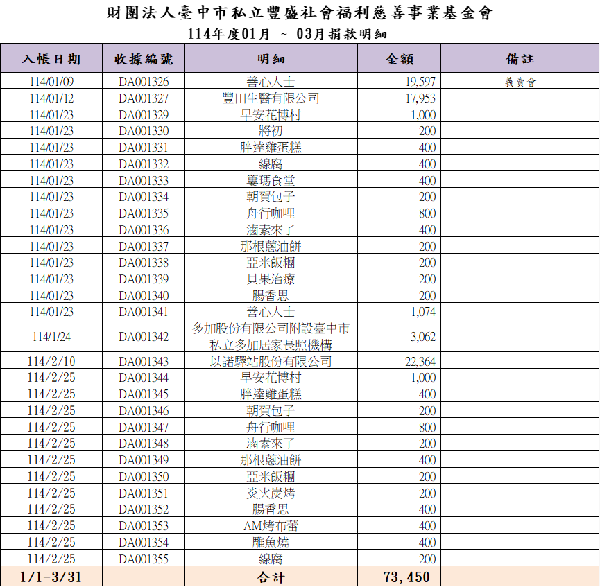 第一季捐款徵信(114/04/11公告)