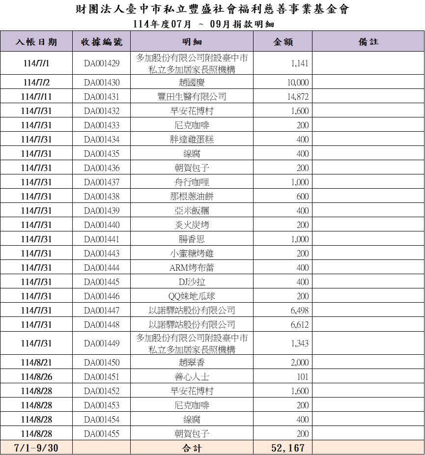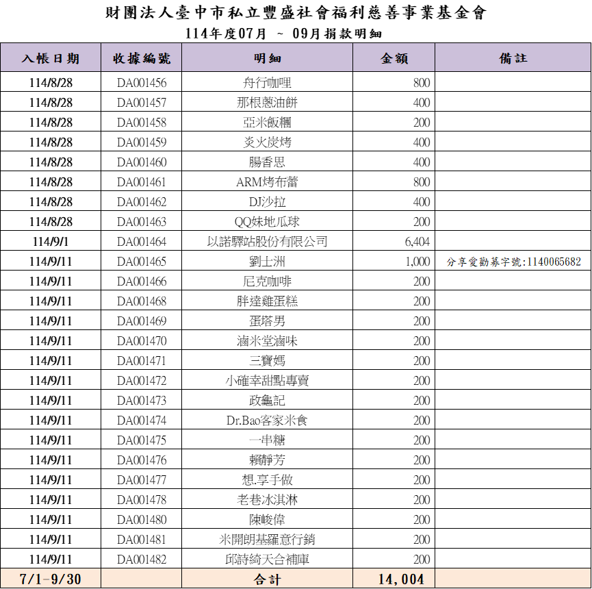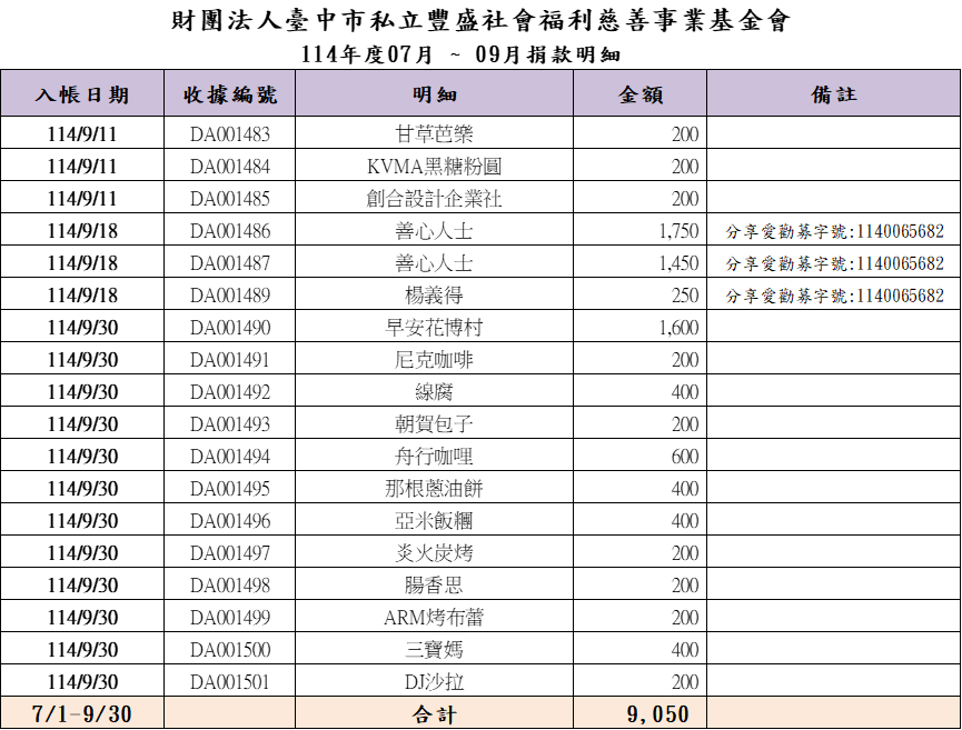 第三季捐款徵信(114/10/23公告)